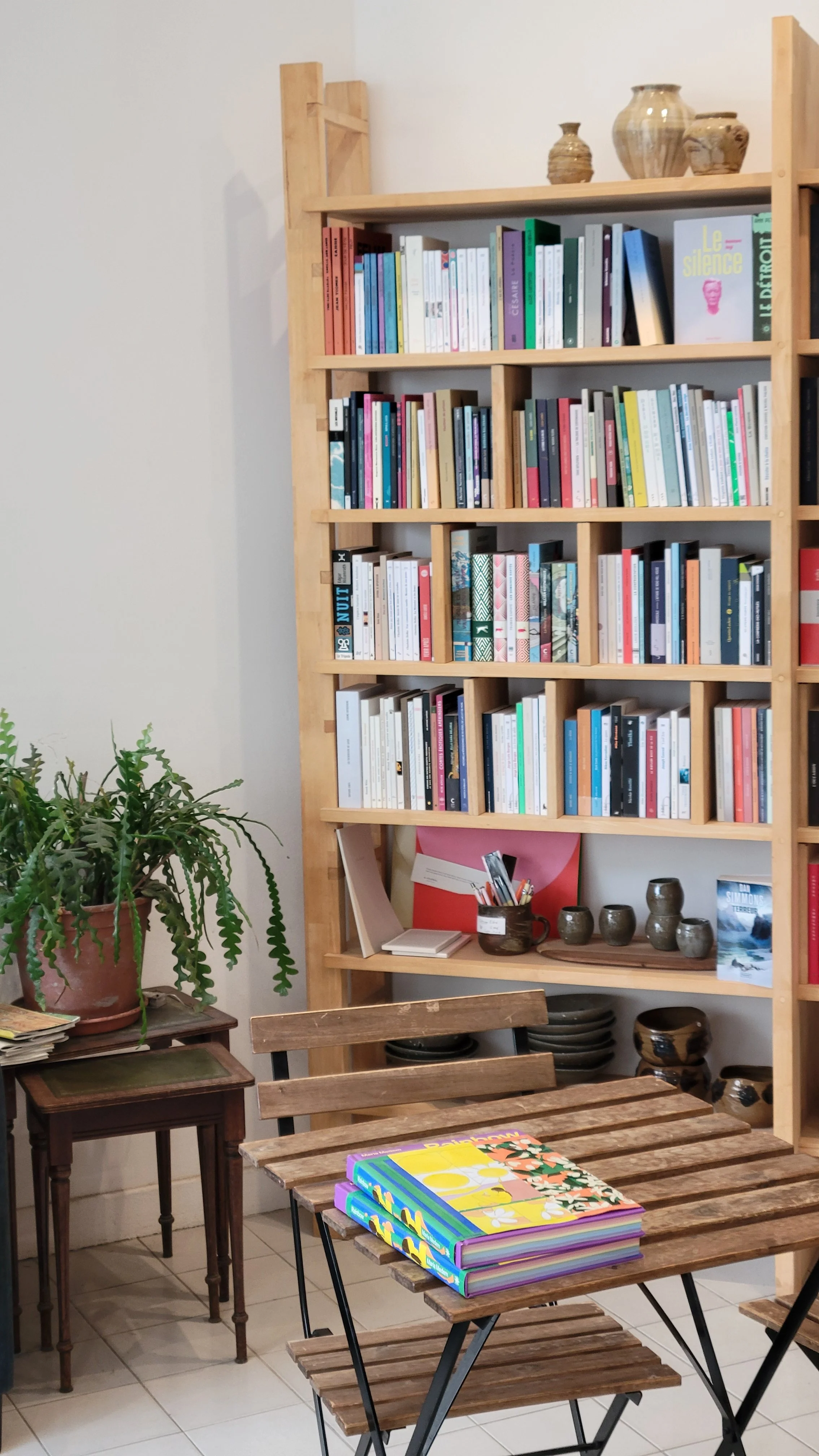 La sélection de la librairie est unique, seulement composée de textes choisis. Une sélection éclectique et essentielle : des romans, de la poésie, des essais engagés et militants, des beaux livres, des romans graphiques, des livres jeunesse se côtoient pour le plus grand bonheur de nos visiteur-ses.